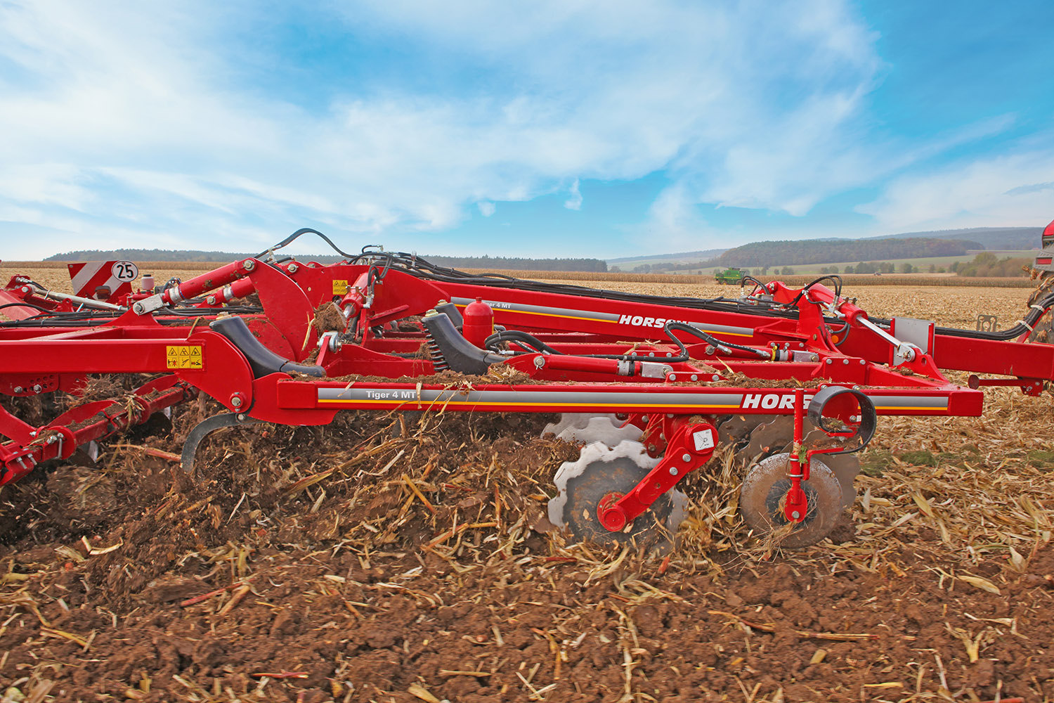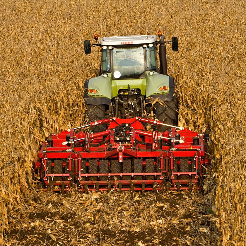 After grain maize, lodged grain and catch crop Turning of grassland and set-aside land Intensive crumbling on heavy soils TerraGrip tines with a working depth of up to 35 cm Hydraulic overload protection of tines with a release force of 800 kg Hydraulic overload protection of the DiscSystem